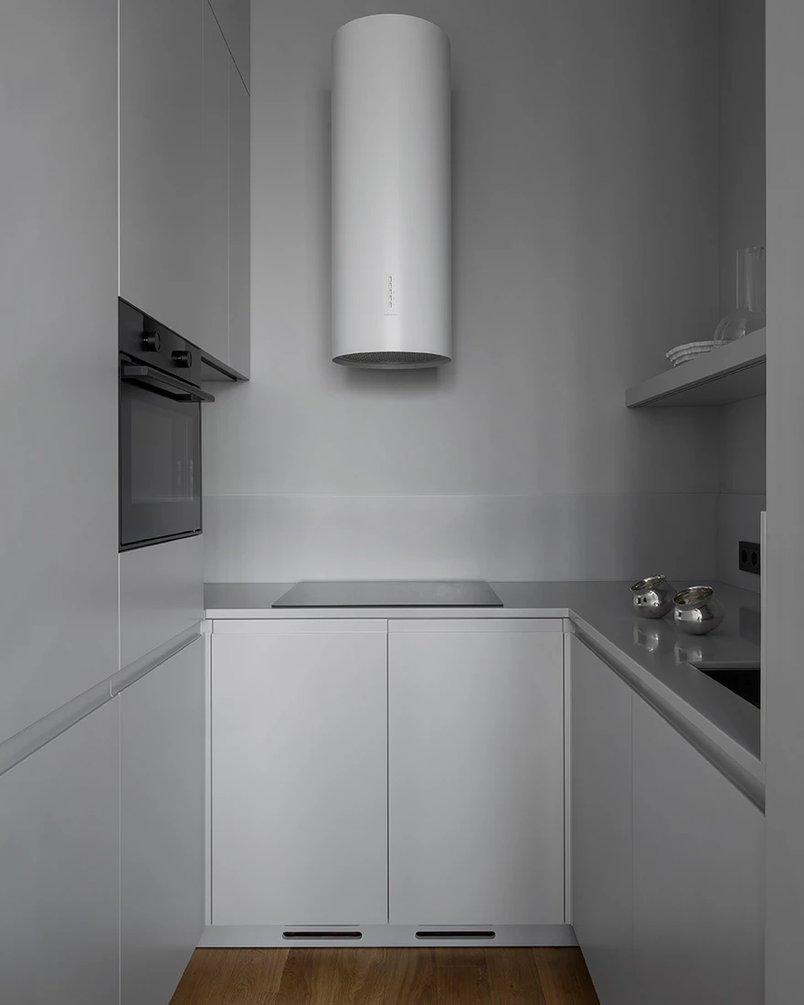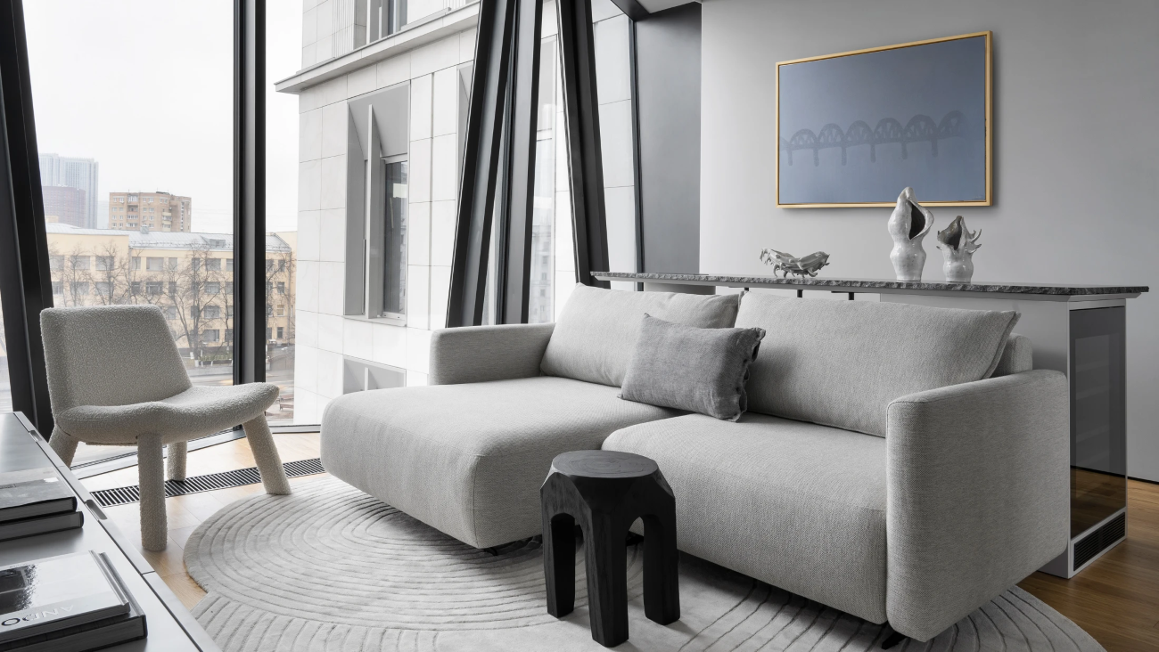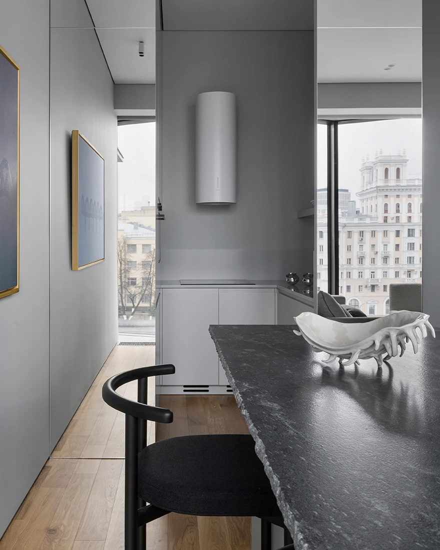 «Встроенная мебель была специально разработана так, чтобы оставаться незаметной и не перегружать пространство. Это позволило сохранить чистоту линий и минималистичность интерьера. Качество и текстура материалов также имели первостепенное значение. Все предметы мебели были подобраны с учетом их долговечности и практичности в условиях городской жизни», — рассказывает дизайнер.