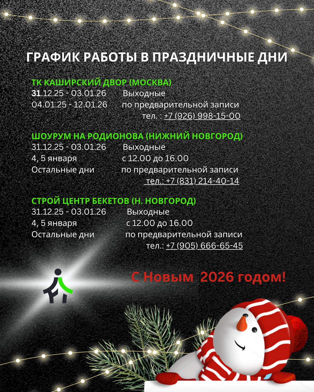 - График работы на новогодние праздники