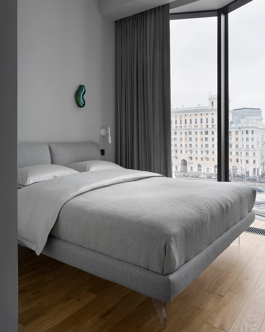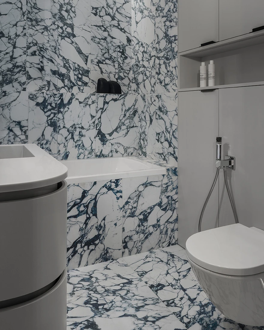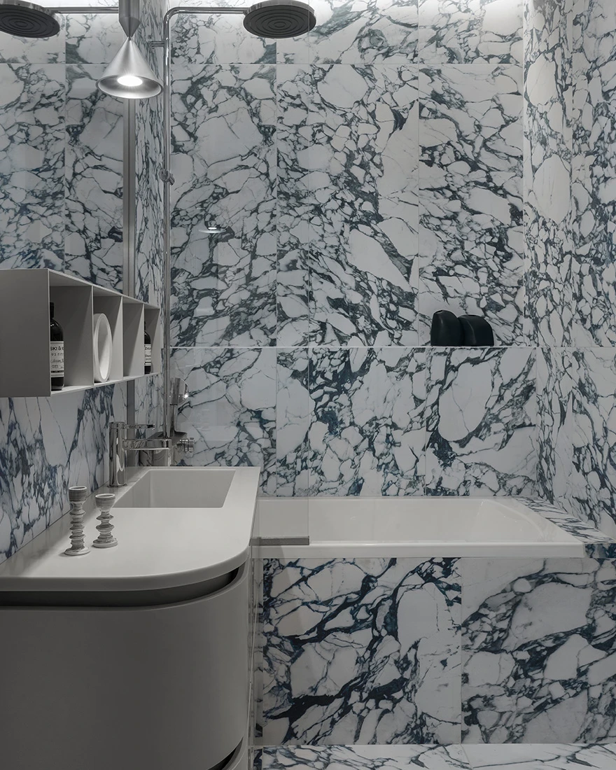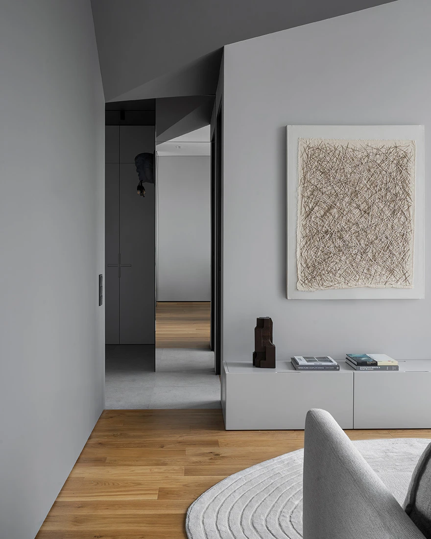 «Встроенная мебель была специально разработана так, чтобы оставаться незаметной и не перегружать пространство. Это позволило сохранить чистоту линий и минималистичность интерьера. Качество и текстура материалов также имели первостепенное значение. Все предметы мебели были подобраны с учетом их долговечности и практичности в условиях городской жизни», — рассказывает дизайнер.