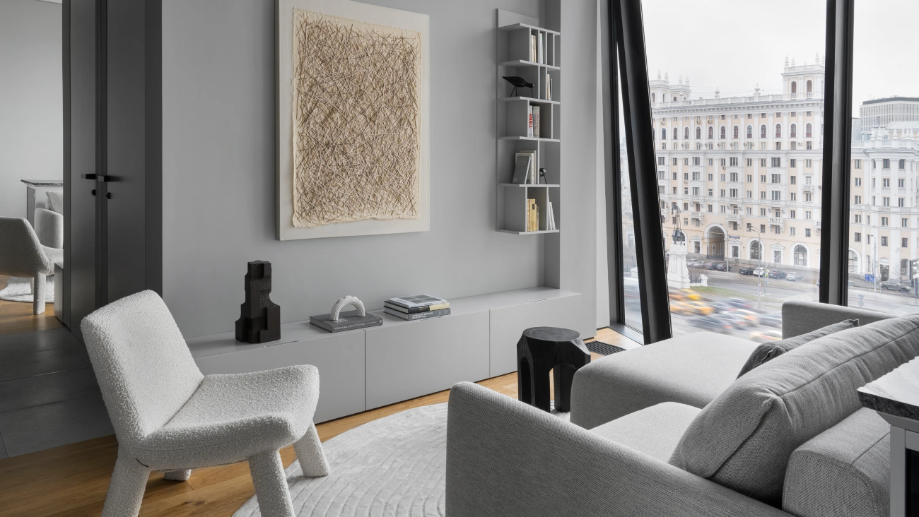 - Апартаменты в серой гамме в центре Москвы для сдачи в аренду